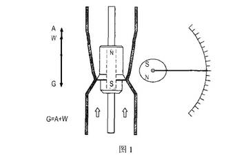 如圖1所示,相對應測量介質的某一流量,磁.性浮子在測量管中對應一個浮子位置,這個浮子位置通過指示器中的經過精密充磁的磁耦合系統帶動指針,由刻度盤和指針讀出相應的流量值。